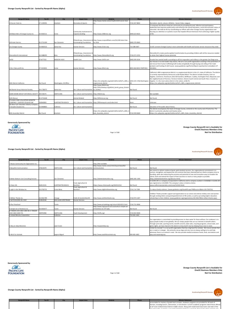 Nps By Np Name Updated 9 9 15 Pdf Orange County Nonprofit Organization
